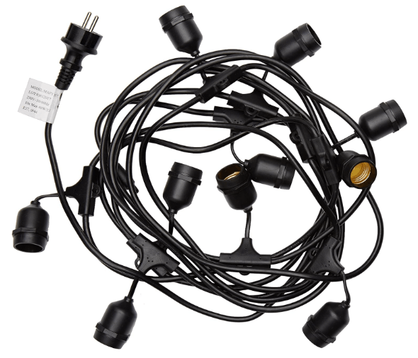 Cette Guirlande douilles noires décoratives étanches est le choix parfait pour mettre en valeur votre extérieur de maison ou embellir votre terrasse de café, restaurant ... tout en offrant un style à la fois vintage et chic.