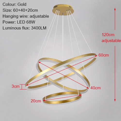 Le lustre Royal à 3 cercles en acrylique doré incarne l’élégance moderne. Ses anneaux lumineux offrent un éclairage doux et raffiné, idéal pour sublimer un salon ou une salle à manger. Un design luxueux qui associe brillance dorée et sophistication contemporaine.
