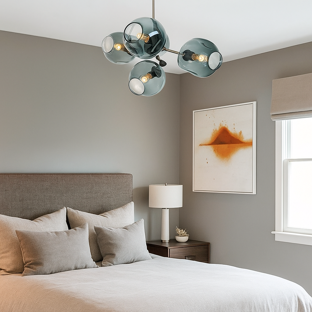 Le lustre peut être suspendue à une hauteur ajustable permettant de jouer avec la disposition et de créer une installation personnalisée.